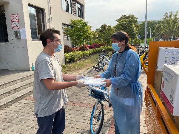 自2022年开春以来,新冠疫情来势汹汹。目前上海新冠疫情形势非常严峻,全国上下团结一心,众志成城,全力以赴防控疫情。随着疫情的持续和升级,各类防疫物资日益短缺,为了支持学校的防疫工作,保护好在校师生的健康安全,统计与数学学院学生家长联合上海撷彦信息科技有限公司为学校捐赠了一批紧缺的防疫物资。