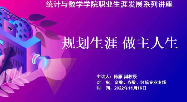 11月16日下午,主题为“规划生涯、做主人生”的2场新生职业生涯规划讲座在线上成功举办,这是学院落实“六环节六目标”,深化“三全育人”工作,扎实推进新生适应性教育,启蒙新生职业生涯意识,帮助新生树立职业目标的重要活动,上海视觉艺术学院陈雁副教授主讲,年级组长聂含聿主持,全体新生参加。