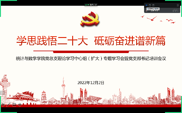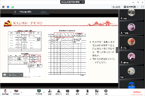 会上,刘伟带领与会人员进行了全面从严治党专题学习,就意识形态、基层党建、统一战线等相关工作进行部署。组织员邢珂介绍了“三会一课”制度以及主题党日活动具体开展的流程、内容与要求,并就党支部会议记录本的填写进行详细讲解。金融统计系教师党支部书记戴晓文、公共数学部教师第二党支部书记史册就支部“三会一课”和主题党日活动开展情况、支部委员分工情况进行了经验分享与交流。