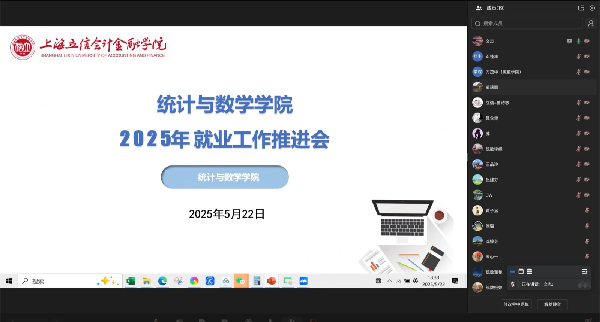 为深入落实教育部及学校就业工作部署,分析研判当前就业形势,推进学院就业“百日冲刺”工作,5月22日晚,统计与数学学院通过线上会议平台召开2025届毕业生就业工作推进会。学院党委书记董艳(主持行政工作)、各系部主任、专业负责人,党政办公室、教务办公室负责人,产学研工作联络员及全体辅导员参加会议,会议由党委副书记、副院长薛瑞峰主持。