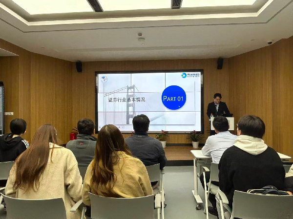 随后,申万宏源证券投教老师王棣经为师生作“证券市场基础知识”专题讲座,从证券品种、交易流程、风险控制等核心内容切入,结合市场案例拆解专业知识。在交流环节,学院领导代表结合学科特色与人才培养目标,就“金融科技背景下统计学与证券业务的融合方向”、“实习实践基地建设”等话题提问交流,证券公司负责人逐一回应,并分享了行业对复合型人才的能力需求,为学院课程设置与人才培养方案优化提供参考。