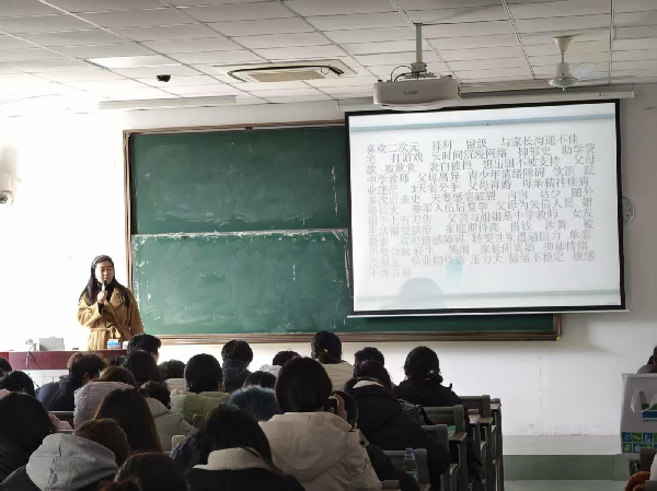 为筑牢学院心理健康防护网,提升学生骨干的心理危机识别与应急处置能力,2025 年 12 月 3 日,统数学院成功举办 “守护心灵,共筑平安 —— 健康识别与应对指南” 专题心理骨干培训。本次培训由学院辅导员聂含聿老师主持,特邀武莹莹老师主讲,全院心理委员、大一年级班长及全体寝室长共同参与。