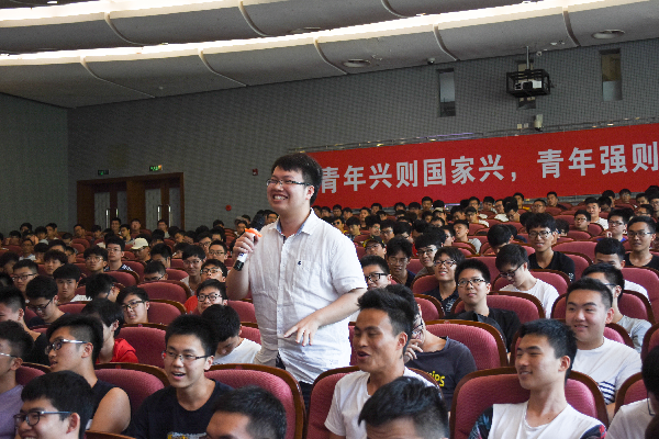 最后,深受鼓舞的现场同学积极参与互动问答,蒋乾麟教授认真回答了同学们提出的问题,并高度称赞同学们关心国家大事,支持国防事业建设,鼓励同学们将个人命运同祖国和民族的命运联系在一起,强化当代大学生的责任感和使命感,踊跃参军,为国效力。