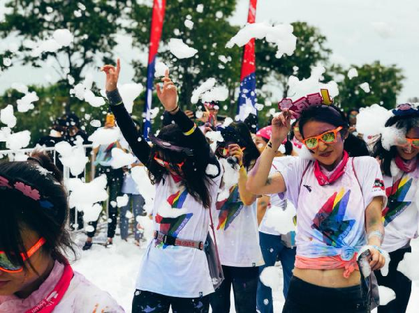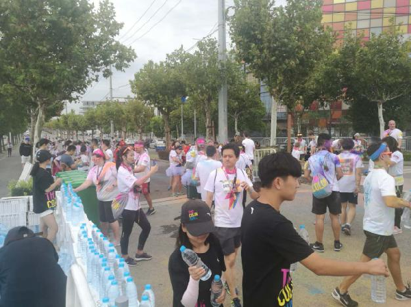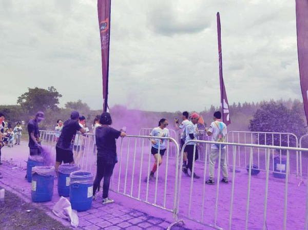 彩色跑志愿服务活动在经过半个月的招募、培训后,于9月8日在浦东新区高行镇森兰绿地圆满落下帷幕。当日,服务项目包括了包裹寄存、水站、起终点、彩色站及舞台区等多个站点的服务,其中最为重要的工作是四个彩色站及泡泡站的志愿者向途径各站点的运动员不间断喷洒彩色粉末和泡泡。医疗站的志者们则负责协助医疗人员处理急救事务,保证跑者的安全。