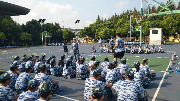 今天的天气酷热难耐,但同学们没有任何一个人放弃,也没有任何一个人倒下。汗水早已浸透了衣服,在热辣辣的阳光下,在教官严格的监督下,同学们仍然继续着练习。