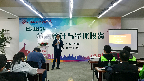 2018年10月20日,上海立信会计金融学院统计与数学学院在我校九十周年华诞纪念日之际,举办了序伦财经学术论坛之“金融统计与量化投资”专题讲座。本次讲座由刘伟副院长主持,学生代表、学院老师、部分校友出席本次活动。
