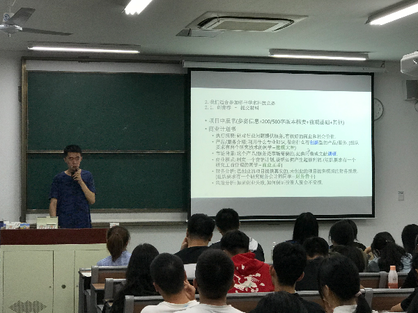 首先,陆同学围绕大学生科研科创比赛的相关内容、参赛原因进行阐述,着重分析了学科竞赛对大学生学业生涯的价值和意义。接着,陆同学又向同学们介绍了创青春、互联网+、挑战杯、上汽教育杯、国家大创等比赛情况和参赛要求。最后,他分享了个人在多场比赛中经验和感悟,并推荐了利于学习的软件网站和查找学习资源的方式方法。
