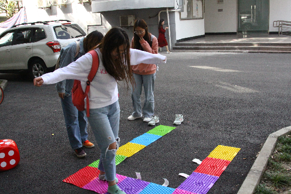 本次活动一共有五个挑战环节。第一个为“初识软件”,每名参赛同学回答正确八个计算机代码所对应的软件即挑战成功;第二个为“I pick you”,每名参赛同学需要套中三个对应知名公司图标上方的玩偶并说出该公司的相关信息即可通过本关;第三个挑战为“痛并快乐”,参赛同学摇骰子前进,到达格子后完成格子上的指令即成功;第四个为“点钞高手”,参赛选手在规定时间内点完钞票并答对钞票数目即可获得印章;最后一项为“打领带”,参赛同学在短时间内依照提示正确的打好领带即可。