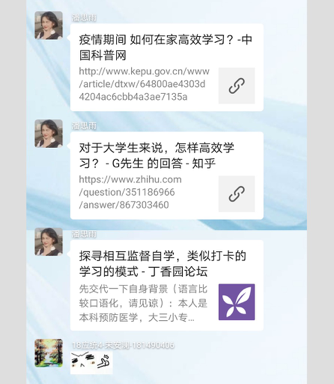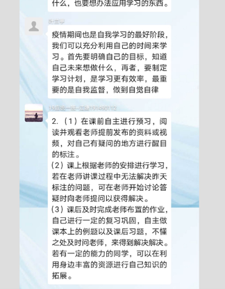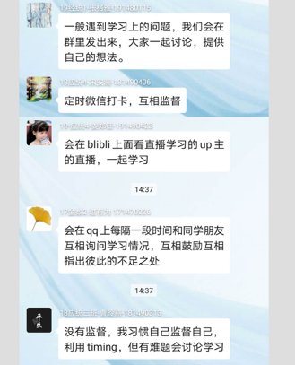 活动中,大家首先共同回顾了校党委书记《大写青春 爱国力行》讲话精神,分享了同龄人和志愿者的战“疫”故事。通过围绕“大学生应该做什么、做了什么、还能做什么”展开学习与讨论,分享在家学习的方法和注意事项,并提出了自己碰到的问题,大家相互解答,群内氛围热烈。