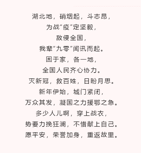 危难面前,风雨同心,共克时艰,携手同行。此次微创作主题活动中,我们收到很多感人至深的作品,这些作品中饱含同学们对逆行者们的崇拜和感恩,更加懂得什么是责任与担当。没有人生来勇敢,正因为被需要,才选择了逆风前行!