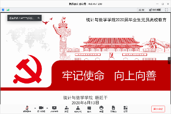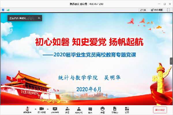 为进一步引导毕业生党员在即将离开校园之际浓厚爱校心、坚定报国志、凝聚成才行,不惧风雨、勇挑重担,让青春在党和人民最需要的地方绽放绚烂之花。6月13日上午,学院开展了一次以“初心如磐 使命在肩”为主题的“四个一”云端毕业生党员离校教育活动。院长、党总支副书记杨廷干,党总支书记吴明华,党总支副书记、副院长陈秋兰出席活动,学生第四党支部全体成员参加活动,离校教育活动由党支部书记赵建芬主持。