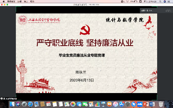 上好一堂特殊党课。首先,党总支书记吴明华以以学思践悟习近平新时代中国特色社会主义思想为主线,以“四史”学习教育为重点为毕业生上党课,勉励毕业生党员做到初心如磐、知史爱党、扬帆起航。院长、党总支副书记杨廷干以“牢记使命 向上向善”为题上专题党课,希望毕业生党员践行终生学习理念,做心怀感恩之人,不忘初心、砥砺前行。党总支副书记、副院长陈秋兰以“严守职业底线 坚持廉洁从业”为题上专题党课,希望同学们牢记立信校训,坚持廉洁从业。